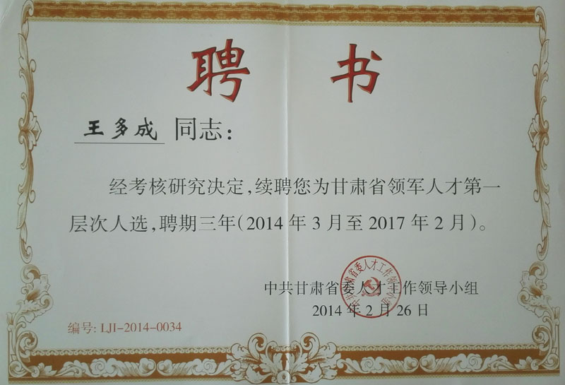 2014年甘肅省第一層次領(lǐng)軍人才聘…