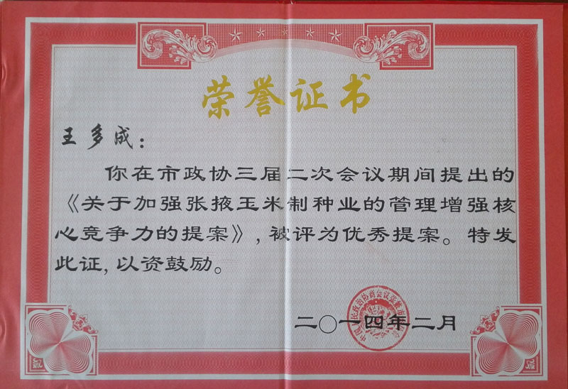 2014年榮獲張掖市政協(xié)三屆二次會…