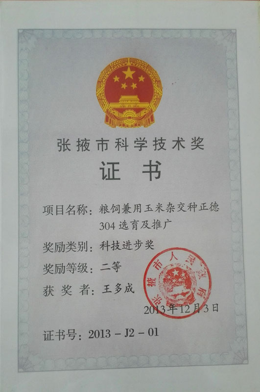 2012年榮獲張掖市科技進(jìn)步一等獎…